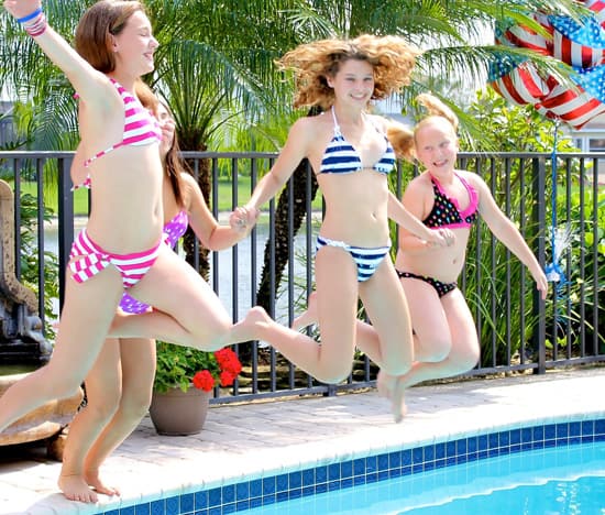 What’s a pool party without everyone getting wet? We like to play a game called “Greased Watermelon.” I buy a large whole watermelon, rub a teaspoon of shortening or petroleum jelly over it and toss it into the pool. The bigger the watermelon, the better! The kids get divided into teams at either end of the pool and then the watermelon is dropped in the center. The team that gets the melon to the other team’s side first, without lifting it out of the water, is the winner. This game is guaranteed to get everyone jumping in the pool to play. It’s even fun to have an adult match.