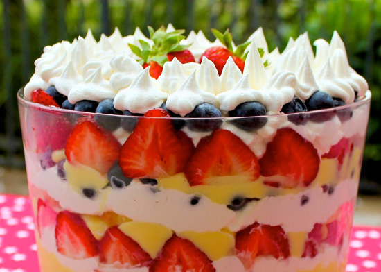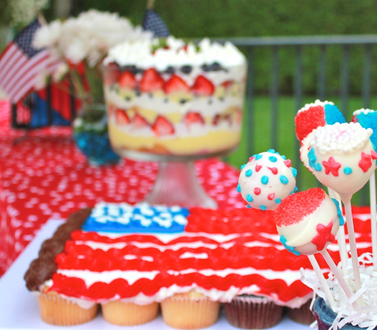 No 4th of July party would be complete without some red, white and blue desserts. One of my all-time favorite party desserts is a trifle, super-simple sweet that can be prepared ahead of time. No matter what the ingredients, the layered approach guarantees it will be as pretty as it is tasty. Cake pops are also a treat the kids go crazy over. Plus, the pops can be prepared a day or two before.