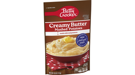 Made with real potatoes, every pouch of Betty Crocker Roasted Garlic Flavored Mashed Potatoes brings you a taste and texture you'll love. Just add milk and butter to have an easy side dish the whole family will enjoy that's ready in minutes. Simply follow the steps on the package to heat some water and butter, stir in milk and the potatoes, and serve. Keep these instant savory roasted garlic potatoes on hand as a pantry staple - they're a delicious addition to dinner. Or make these flavorful potatoes your go-to warm comfort food for any meal. For more than a century, Betty Crocker has been a popular creator of easy, delicious recipes. Today, the Betty Crocker kitchen is still providing convenient, tasty dessert mixes, frostings, and convenient meal options and side dishes. Contains one plastic pouch of Betty Crocker Roasted Garlic Mashed Potatoes, Made with Real Potatoes, 4 oz.