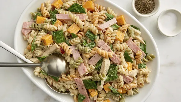 Turn leftover ham into the main attraction, with plenty of fresh veggies and yummy pasta tossed with ranch dressing.