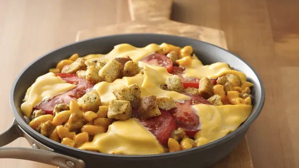 This skillet meal is perfect for weeknight dinners—it's beefy, creamy and cheesy and packed with tomatoes and macaroni--and everyone will ask for seconds!