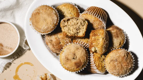 Step2In a container, combine the ground Cheerios™ with the quinoa flour, potato starch, cinnamon, baking powder, baking soda and salt.