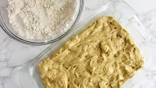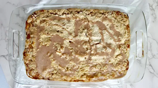 var configuration = {"title":"Apple Crumble Coffee Cake with Cinnamon Glaze","introduction":"\u003cp\u003eThis apple coffee cake is full of warm spices, fresh apples, and topped with a buttery crisp sugar cookie crumble topping. With each bite you get a perfect balance of softness and crunch that pairs perfectly with the sweet cinnamon glaze. Served slightly warm with a cup of coffee in the early morning hours or as a late-night snack, this Apple Crumble Coffee Cake with Cinnamon Glaze is a warm comforting dessert everyone will love.\u003c/p\u003e","servingSize":"1 Slice","image":{"small":{"media":"(min-width: 0px)","src":"https://mojo.generalmills.com/api/public/content/a-CZc4C0R7uhR2-nRad3bA_webp_base.webp?v=a2b3c39d\u0026t=e724eca7b3c24a8aaa6e089ed9e611fd"},"medium":{"media":"(min-width: 500px)","src":"https://mojo.generalmills.com/api/public/content/a-CZc4C0R7uhR2-nRad3bA_webp_base.webp?v=a2b3c39d\u0026t=191ddcab8d1c415fa10fa00a14351227"},"large":{"media":"(min-width: 767px)","src":"https://mojo.generalmills.com/api/public/content/a-CZc4C0R7uhR2-nRad3bA_webp_base.webp?v=a2b3c39d\u0026t=191ddcab8d1c415fa10fa00a14351227"},"alt":"Apple Crumble Coffee Cake with Cinnamon Glaze"},"contributor":{"label":"By","name":"Brittney Nourie","displayDate":{"label":"Updated","date":"Sep 26, 2025"}},"ingredientGroups":[{"name":"Cake","ingredients":[{"quantity":"1","description":"box Betty Crocker™ Super Moist™ Butter Recipe Yellow Cake Mix","productLink":"/products/betty-crocker-baking-and-cake-mixes/butter-recipe-yellow"},{"quantity":"1","description":"cup sour cream"},{"quantity":"3","description":"large eggs"},{"quantity":"2","description":"teaspoons vanilla"},{"quantity":"1/3","description":"cup vegetable oil"},{"quantity":"1","description":"teaspoon ground cinnamon"},{"quantity":"1/2","description":"teaspoon ground allspice"},{"quantity":"2","description":"cups diced peeled McIntosh apple"}]},{"name":"Topping","ingredients":[{"quantity":"1","description":"pouch (17.5 oz) Betty Crocker™ Sugar Cookie Mix","productLink":"/products/cookiemix/sugar"},{"quantity":"1","description":"teaspoon ground cinnamon"},{"quantity":"1/2","description":"teaspoon ground allspice"},{"quantity":"1/2","description":"cup cold unsalted butter, cubed"}]},{"name":"Glaze","ingredients":[{"quantity":"1","description":"cup powdered sugar"},{"quantity":"1","description":"to 2 tablespoons milk"},{"quantity":"1","description":"teaspoon ground cinnamon "}]}],"steps":[{"description":"\u003cp\u003eHeat oven to 350°F. Lightly grease a 13x9-inch glass baking dish with shortening or cooking spray.\u0026nbsp;\u003c/p\u003e"},{"description":"\u003cp\u003eIn a large mixing bowl, stir all cake ingredients, except the chopped apples, with a rubber spatula or whisk until batter has only a few dry streaks remaining. Gently fold in the chopped apples.\u003c/p\u003e","stepShotImageUrl":"//mojo.generalmills.com/api/public/content/EJ3p-xCcQtCCqT8R9HnViQ_webp_base.webp?v=5a8c98b8\u0026t=51a43a57af4046789e5a7f20567b1195"},{"description":"\u003cp\u003ePour the batter into the prepared pan and smooth the surface.\u003c/p\u003e","stepShotImageUrl":"//mojo.generalmills.com/api/public/content/jxB7Ds7XREiOBBlKsuP_1Q_webp_base.webp?v=86c82ea9\u0026t=51a43a57af4046789e5a7f20567b1195"},{"description":"\u003cp\u003eIn a medium bowl, mix cookie mix, 1 teaspoon cinnamon, and 1/2 teaspoon allspice. Cut in the butter, using a pastry blender or fork, until the mixture resembles coarse crumbs.\u003c/p\u003e","stepShotImageUrl":"//mojo.generalmills.com/api/public/content/vQwrZnfxTFyJJuZ4vQFO_Q_webp_base.webp?v=fb37a3bf\u0026t=51a43a57af4046789e5a7f20567b1195"},{"description":"\u003cp\u003eSprinkle crumb topping mixture over the cake batter.\u003c/p\u003e","stepShotImageUrl":"//mojo.generalmills.com/api/public/content/QxPCll2bSSGzrxT8lDo4iw_webp_base.webp?v=6a17aa2c\u0026t=51a43a57af4046789e5a7f20567b1195"},{"description":"\u003cp\u003eBake for 35 to 40 minutes or until a toothpick inserted in the center comes out with only a few crumbs. Cool 15 minutes.\u003c/p\u003e"},{"description":"\u003cp\u003eMeanwhile, in a small bowl, whisk together the glaze ingredients until smooth. Drizzle glaze over warm cake.\u003c/p\u003e","stepShotImageUrl":"//mojo.generalmills.com/api/public/content/duHC78rpStebHf3VL8E9Sg_webp_base.webp?v=a5451866\u0026t=51a43a57af4046789e5a7f20567b1195"}],"tips":[{"title":"","description":"\u003cp\u003eTo enhance the apple flavor of the glaze, melt 1/2 cup of apple butter in the microwave and cool slightly. Add to the rest of the glaze ingredients to create a cinnamon apple glaze.\u003c/p\u003e","category":"Method Note","tipShots":[]},{"title":"","description":"Cozy apple crumble cake with cinnamon and allspice, sugar cookie crumble topping, and cinnamon glaze. Perfectly moist, sweet, and deliciously tender.","category":"Rich Snippet","tipShots":[]}],"kitchenTips":[{"title":"","description":"\u003cp\u003eTo enhance the apple flavor of the glaze, melt 1/2 cup of apple butter in the microwave and cool slightly. Add to the rest of the glaze ingredients to create a cinnamon apple glaze.\u003c/p\u003e","category":"Method Note","tipShots":[]}],"additionalContent":[{"title":"Recipe Ingredients","description":"\u003cp\u003eWith just a few ingredients this fall apple cake is easy to make.\u003c/p\u003e\u003cp\u003e\u003cstrong\u003eButter Recipe Yellow Cake Mix: \u003c/strong\u003eWith this rich yellow cake mix, making a delicious and soft apple cake is so much easier.\u003c/p\u003e\u003cp\u003e\u003cstrong\u003eFull-Fat Sour Cream: \u003c/strong\u003eUsing full-fat sour cream enhances the moisture in the cake and ensures a sweet tender crumb.\u003c/p\u003e\u003cp\u003e\u003cstrong\u003eSugar Cookie Mix: \u003c/strong\u003ePairing a sugar cookie mix with a touch of cinnamon for the crumb topping gives a subtle crunch to the soft cake.\u003c/p\u003e\u003cp\u003e\u003cstrong\u003eCold Unsalted Butter: \u003c/strong\u003eCold butter is a must in this cr