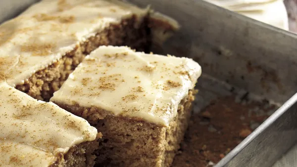 Step4BROWNED BUTTER GLAZE: In 1-quart saucepan, melt butter over low heat until golden brown. Remove from heat. Stir in powdered sugar and vanilla. Stir in hot water until smooth and spreadable.