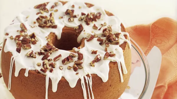 Step3Bake 1 hour 25 minutes to 1 hour 30 minutes or until toothpick inserted in center comes out clean. Cool 20 minutes; remove from pan to wire rack. Cool completely, about 1 hour. Sprinkle with powdered sugar.