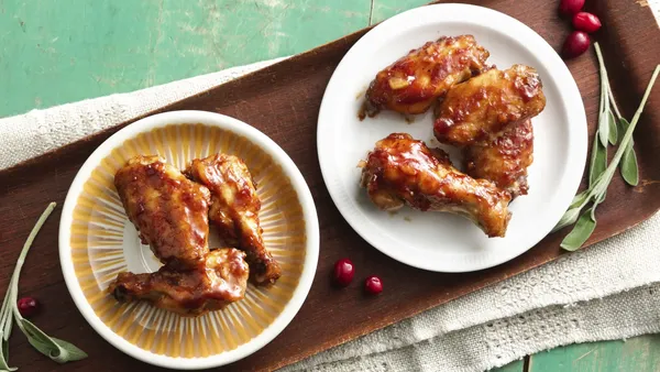 Honey-mustard marinated hot turkey and bacon bites get sauced with a tangy mustard and cranberry combo.
