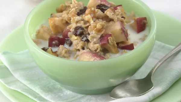 Bake uncovered 40 to 45 minutes or until most liquid is absorbed. Top with walnuts. Serve with additional milk.