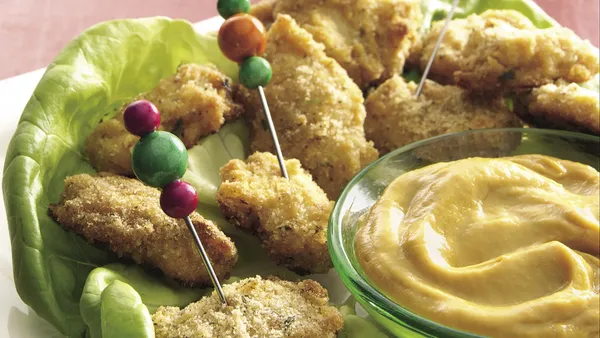 These crunchy, crispy chicken fingers aren't just for kids. Corn Chex cereal is the simple base for an out-of-the ordinary coating, perfectly complemented by a sweet and snappy honey mustard dipping sauce.