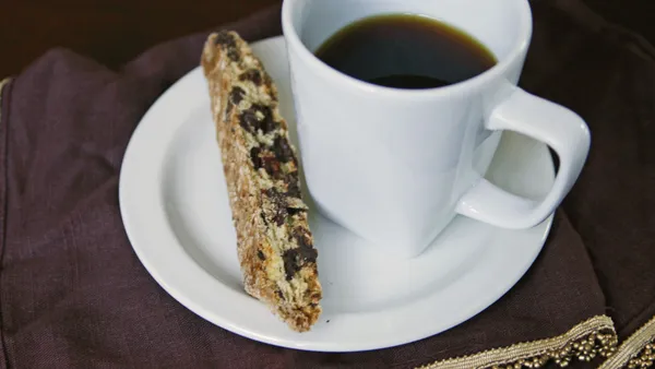 A perfect compliment to your morning cup of coffee, this biscotti recipe is a crunchy riff on chocolate chip banana bread.