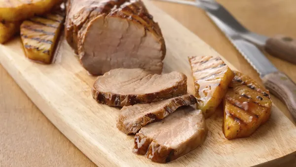 Step2Place pork on grill rack over medium-low heat. Cover grill; cook 18 to 22 minutes, turning several times and brushing generously with remaining sauce, until pork has slight blush of pink in center and meat thermometer inserted in center reads 160°F. Discard any remaining sauce.
