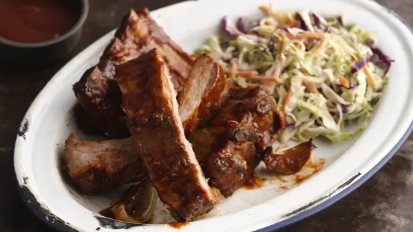 Step4Brush sauce over ribs, using pastry brush. Turn ribs over, using tongs, Brush meaty sides of ribs with sauce.