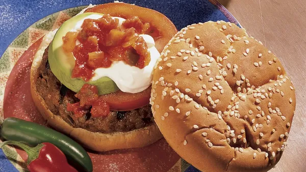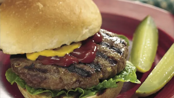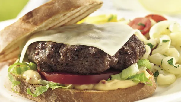 Step4Place patties on grill over medium heat. Cover grill; cook 11 to 13 minutes, turning once, until meat thermometer inserted in center of patties reads 160°F. During last 2 minutes of cooking, top each patty with cheese and place buns, cut sides down, on grill. Cook until cheese is melted and buns are toasted. Remove burgers and buns from grill; cover to keep warm.