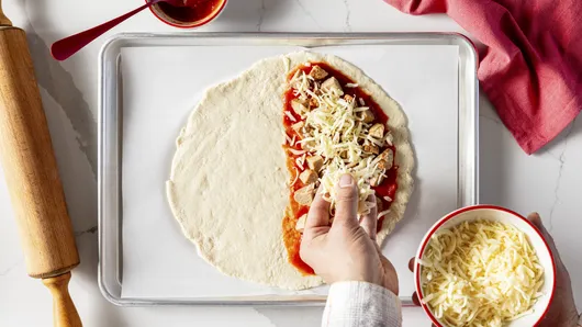 If you’re in the mood for something a little different, this beef calzone recipe is easy to customize. If you’re not a fan of meatballs, you can easily make the calzones with 1/2 pound ground beef, ground or sliced chicken, ground turkey, or turkey sausage. These options are a little on the lighter side but still pack in tons of flavor. If you're a fan of pepperoni, go ahead and throw that in for a pizza-inspired, crowd-pleasing twist.