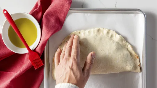 Making an egg wash (in place of oil) for your homemade calzone is simple and gives a beautiful golden crust. Just whisk one egg with a tablespoon of water or milk until smooth. This mixture will add a touch of shine and color when baked. Brush the egg wash lightly over the calzone’s surface with a pastry brush. Be careful not to use too much, as it can drip down and cause the calzone to stick to the pan. For extra flair, sprinkle sesame or poppy seeds on top of the egg wash to give added texture and flavor. Bake as directed to enjoy the golden brown deliciousness!