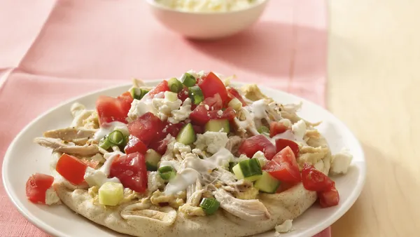 - 4 soft Greek-style pita breads (6 or 7-inch), heated