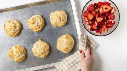 For added convenience, cover the shaped shortcake dough on the baking sheet and refrigerate for up to 4 hours before baking. Continue as directed in Step 5.