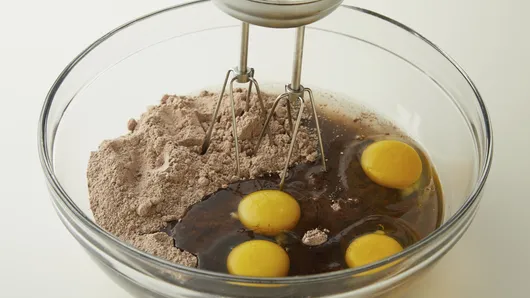 Step2In large bowl, beat Cake ingredients with electric mixer on medium speed 2 minutes, scraping bowl occasionally. Pour into pan.