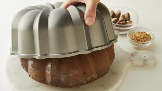 Step1Heat oven to 350°F. Generously spray 12-cup fluted tube cake pan with baking spray with flour.