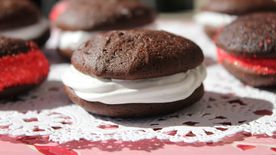 Spread frosting on bottom of 1 cookie; top with second cookie, bottom side down.