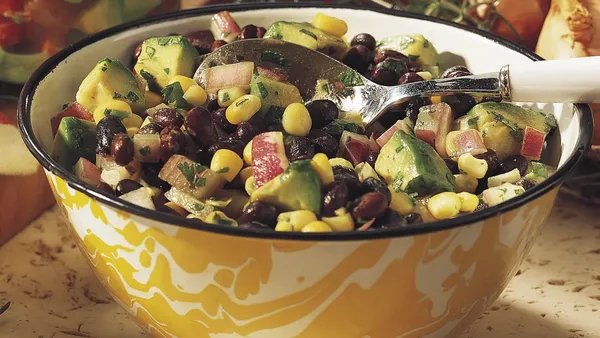 This flavorful black bean relish is more like gourmet salsa! It’s loaded with tomatoes, two kinds of peppers, onions and zesty seasonings.