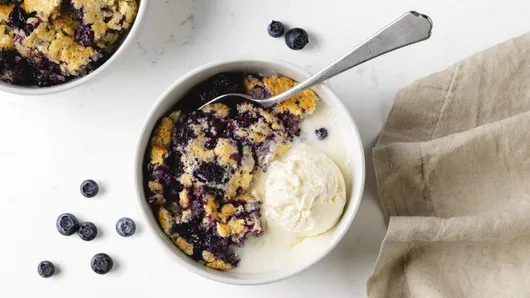 Make the most of summer's fresh fruit and mix up an easy Blueberry Cobbler. With a tender topping and a berry filling, this easy Blueberry Cobbler with Bisquick™ Original Pancake & Baking Mix is a dessert you'll be asked to make again and again. If you don't have fresh blueberries on hand, frozen blueberries achieve the same, great taste. For this Blueberry Cobbler recipe, just make sure the total volume of fruit remains the same if using frozen blueberries. Spoons up and enjoy.