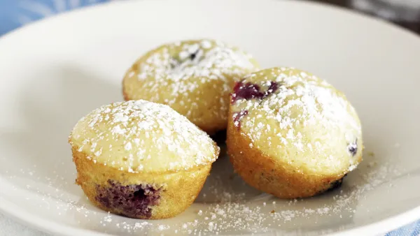 Step2In medium bowl, mix all Pancake Popper ingredients except the blueberries. Lightly fold half of the berries into the batter and divide evenly among muffin cups. Evenly divide remaining blueberries over batter.