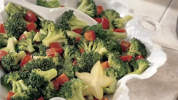 Step2Stir garlic into hot oil. Immediately add broccoli, bell pepper, onion and water. Cook 4 to 6 minutes, stirring constantly, until broccoli is crisp-tender and onion is beginning to brown. Stir in salt.