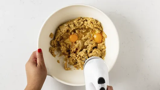In large bowl, beat brown sugar and butter with electric mixer on medium speed, scraping bowl occasionally, until light and fluffy. Beat in vanilla and eggs until well blended.