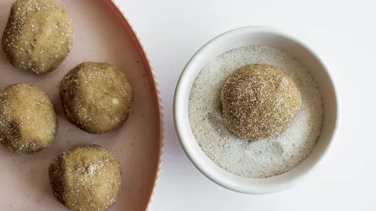 In a small bowl, combine the 1/4 cup granulated sugar with the remaining 1 teaspoon of chai spice mix. Roll 3-tablespoon-size portions of cookie dough into balls. Then, roll in the spiced sugar mixture. Place on the prepared baking sheets, making sure to leave room for spreading.