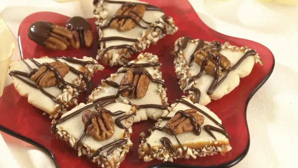 Step1Heat oven to 350°F. Spread pecans in ungreased shallow pan. Bake uncovered 6 to 10 minutes, stirring occasionally, until light brown. Set aside.