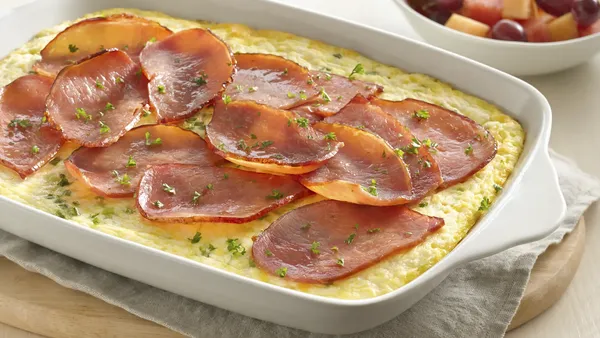 Step3Bake uncovered about 35 minutes or until eggs are set but moist. Sprinkle with parsley.