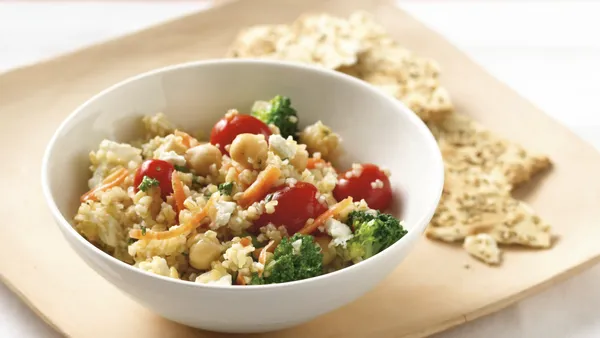 Dinner ready in just 40 minutes! Try this hearty bulgar pilaf that's filled with veggies - a delicious meal.
