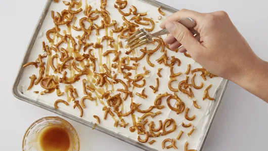 - 1 1/4 cup pretzel twists, coarsely crushed (about 1 cup)