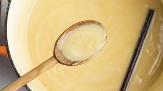 Step1Stir together the milk and sugar in a large, heavy-bottomed pot. (Make sure the liquid only goes three fourths the way up the sides, as it will froth when the baking soda is added.) Add the cinnamon stick, salt, vanilla extract and vanilla bean seeds plus the empty vanilla bean pods. Bring to a boil on medium-high heat while constantly stirring. This will take about 15 minutes. DO NOT take your eyes off the pot. It boils over easily and quickly!