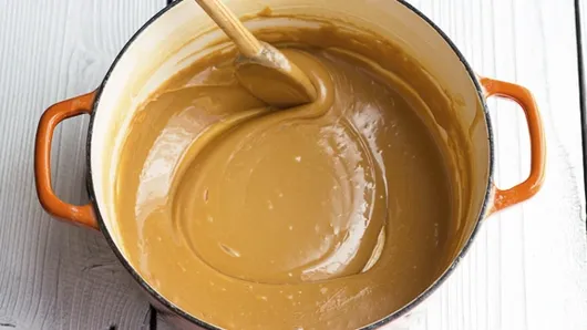 Step5Keep stirring until the mixture is a rich brown and thick enough to coat the back of the spoon, this will happen after about 15 to 30 minutes. Allow the sauce to cool slightly and then pour into airtight containers. The mixture will keep in the refrigerator for up to 1 week.