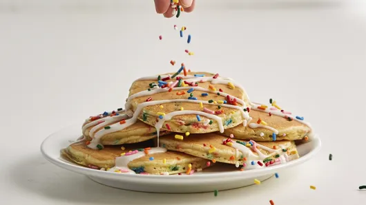 Who says you can’t eat cake for breakfast? These birthday cake pancakes take two amazing sweets and turn them into one celebration-worthy treat that you can enjoy any time of the day. The secret to these soft and pillowy beauties? Combining Bisquick™ Original Pancake & Baking Mix and Betty Crocker™ Super Moist™ Yellow Cake Mix together to create an extra-fluffy pancake. Bright colored sprinkles and a homemade powdered sugar glaze are the icing on these festive cake batter pancakes!