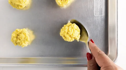 Step2In large bowl, beat cream cheese, softened butter and lemon peel with electric mixer on medium speed about 1 minute or until well blended; scrape side of bowl. Beat in egg and 2 tablespoons lemon juice until smooth. On low speed, beat in cake mix until blended. Drop dough by rounded tablespoonfuls 2 inches apart on ungreased cookie sheets.