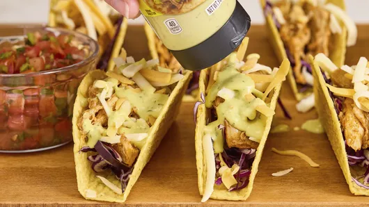 var configuration = {"title":"Cantina Chicken Tacos","introduction":"\u003cp\u003eWhen it comes to family-friendly dinners that are quick, easy, and delicious, nothing beats a good taco night. We’re here to help you elevate your taco game with this mouthwatering recipe. You’ll love the combination of our crunchy Old El Paso™ Stand \u0027n Stuff Taco Shells and slightly spicy Creamy Salsa Verde Sauce.\u003c/p\u003e\u003cp\u003eThe origins of tacos can be traced back to Mexico long before the arrival of Europeans. Early versions of tacos were likely a convenient way to hold and consume spicy fillings. Thin slices of meat grilled on coals were placed in tortillas and served with a variety of toppings.\u003c/p\u003e\u003cp\u003eTacos gained widespread popularity outside of Mexico as immigrants brought their culinary traditions to the United States. By the 20th century, tacos had become an integral part of American cuisine. This led to the creation of various delicious adaptations, such as the ones you’re about to make!\u003c/p\u003e\u003cp\u003eIn the United States, October 4th was officially National Taco Day for years, until 2024. Going forward, National Taco Day will occur on the first Tuesday of October. This ensures the occasion always falls on a “Taco Tuesday.”\u003c/p\u003e\u003cp\u003eThe record for the largest taco was set in 2019 in Querétaro, Mexico. It measured an incredible 335 feet long! Our tacos are about 6 inches long, but we think they’re still pretty impressive.\u003c/p\u003e\u003cp\u003eWorldwide, the most popular taco toppings include cheese, lettuce, tomatoes, onions, and salsa. While these basic toppings are great, for this special taco, we chose to mix it up a bit with different veggies and spicy sauces. Feel free to substitute your favorite crunchy veggies and use your favorite hot sauce for these yummy tacos.\u003c/p\u003e","servingSize":"1 Taco","image":{"small":{"media":"(min-width: 0px)","src":"https://mojo.generalmills.com/api/public/content/fXUf97wVS9KaQuYW3T01-A_webp_base.webp?v=4bc54ceb\u0026t=e724eca7b3c24a8aaa6e089ed9e611fd"},"medium":{"media":"(min-width: 500px)","src":"https://mojo.generalmills.com/api/public/content/fXUf97wVS9KaQuYW3T01-A_webp_base.webp?v=4bc54ceb\u0026t=191ddcab8d1c415fa10fa00a14351227"},"large":{"media":"(min-width: 767px)","src":"https://mojo.generalmills.com/api/public/content/fXUf97wVS9KaQuYW3T01-A_webp_base.webp?v=4bc54ceb\u0026t=191ddcab8d1c415fa10fa00a14351227"},"alt":"Cantina Chicken Tacos"},"contributor":{"label":"By","name":"Betty Crocker Kitchens","profileUrl":"/about-us","displayDate":{"label":"Updated","date":"May 8, 2025"}},"ingredientGroups":[{"ingredients":[{"quantity":"2","description":"tablespoons butter"},{"quantity":"2 1/2","description":"cups shredded cooked chicken"},{"quantity":"2","description":"tablespoons from 1 container (6.25 oz) Old El Paso™ Original Taco Seasoning Mix"},{"quantity":"1 1/2","description":"cups shredded red cabbage"},{"quantity":"1","description":"box (4.7 oz) Old El Paso™ Stand \u0027n Stuff Taco Shells (10 Count), heated as directed on package"},{"quantity":"1 1/4","description":"cups shredded Mexican-style four-cheese blend (5 oz)"},{"quantity":"1/2","description":"cup from 1 bottle (9 oz) Old El Paso™ Creamy Salsa Verde Sauce"},{"quantity":"1/2","description":"cup pico de gallo"}]}],"steps":[{"description":"In 10-inch nonstick skillet, melt butter over medium heat. Stir in chicken and taco seasoning mix. Cook 5 to 6 minutes, stirring frequently, until chicken is heated through. Remove from heat. ","stepShotImageUrl":"//mojo.generalmills.com/api/public/content/VFu8vaVhQNCckno24AManw_webp_base.webp?v=e2542e59\u0026t=51a43a57af4046789e5a7f20567b1195"},{"description":"Divide cabbage among heated shells. Top with chicken and cheese. ","stepShotImageUrl":"//mojo.generalmills.com/api/public/content/xOIuc35KQIibXi6zUtw4EQ_webp_base.webp?v=7c486631\u0026t=51a43a57af4046789e5a7f20567b1195"},{"description":"Drizzle with sauce, and top with pico de gallo.","stepShotImageUrl":"//mojo.generalmills.com/api/public/content/Tlv-TWlrSyy4Byj9LZQ2NQ_webp_base.webp?v=5ea5a0b6\u0026t=51a43a57af4046789e5a7f20567b1195"}],"tips":[{"title":"","description":"These crispy chicken tacos tuck buttery shredded chicken into crispy taco shells with cheese, cabbage, salsa verde sauce, and pico de gallo.","category":"Rich Snippet","tipShots":[]},{"title":"","description":"\u003cp\u003eFor even cheesier tacos, opt for Old El Paso™ Stand \u0027n Stuff Bold Nacho Cheese Flavored Taco Shells.\u003c/p\u003e","category":"Substitution","tipShots":[]},{"title":"","description":"\u003cp\u003eFor meltier cheese in your taco, follow directions through step 2, then place tacos on same pan or plate used for toasting and return to oven for 2 to 4 minutes, or microwave on High for 20 to 30 seconds.\u003c/p\u003e","category":"Techniques","tipShots":[]},{"title":"","description":"\u003cp\u003eNeed to use up your ripe avocados? You can make your own creamy salsa verde sauce. Place 1 cup jarred salsa verde and 1 (6-oz) avocado, peeled and pitted, in a blender. Blend on high 30 to 60 seconds, until smooth. This will make about 1 1/2 cups of sauce. Leftover sauce can be used as a sandwich spread or drizzled over nachos or Tex-Mex salad bowls.\u003c/p\u003e","category":"Variation","tipShots":[]},{"title":"","description":"\u003cp\u003eKitchen Tested: December, 2024\u003c/p\u003e","category":"Kitchen Tested","tipShots":[]}],"kitchenTips":[{"title":"","description":"\u003cp\u003eFor even cheesier tacos, opt for Old El Paso™ Stand \u0027n Stuff Bold Nacho Cheese Flavored Taco Shells.\u003c/p\u003e","category":"Substitution","tipShots":[]},{"title":"","description":"\u003cp\u003eFor meltier cheese in your taco, follow directions through step 2, then place tacos on same pan or plate used for toasting and return to oven for 2 to 4 minutes, or microwave on High for 20 to 30 seconds.\u003c/p\u003e","category":"Techniques","tipSh