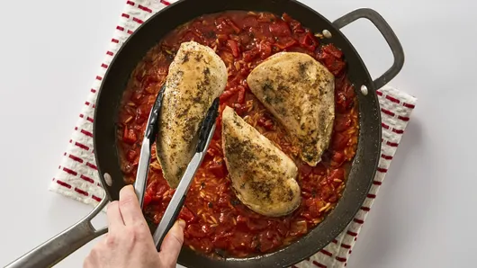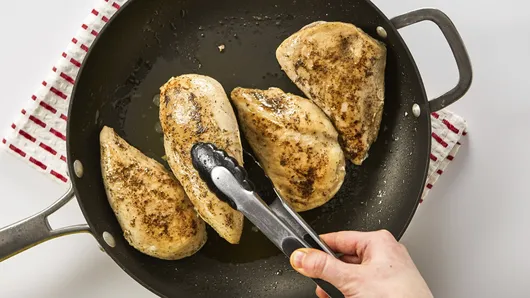 Rub chicken with 1/2 teaspoon of the salt and the pepper. In 12-inch nonstick skillet, heat oil over medium-high heat. Add chicken; cook 3 to 4 minutes on each side or until browned. Remove chicken from skillet.