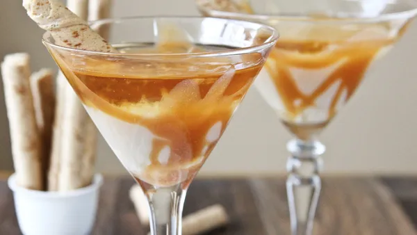 Step2Spoon cooled caramel into each of 2 martini glasses. Place glasses in freezer while making martinis.