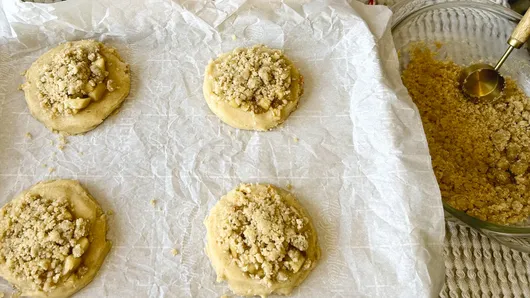 Step9Gently add a tablespoon of the streusel on top of the apple filling.