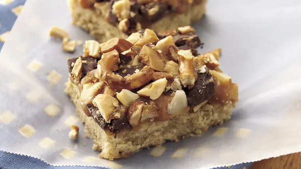 Bake an irresistible combination of caramel, chocolate and nuts into a sweet cookie bar!