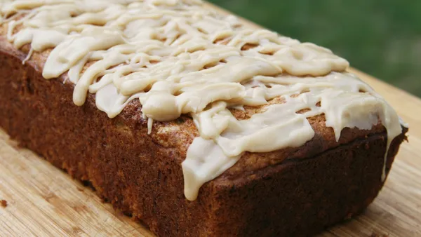 Gradually stir powdered sugar into glaze mixture. Place saucepan of glaze in bowl of cold water. Beat with spoon until smooth and thin enough to drizzle. If glaze becomes too stiff, stir in additional milk, 1/2 teaspoon at a time, or heat over low heat, stirring constantly. Drizzle glaze over loaves. Wrap tightly and store at room temperature up to 4 days, or refrigerate up to 10 days.