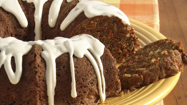 This stunning spin on carrot cake will wow every guest at your next party. A homemade vanilla glaze gives it a pretty, delicious finish.