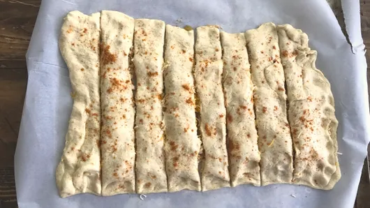 Step5Sprinkle with remaining 1/2 teaspoon taco seasoning mix. Using pizza cutter, cut into 1-inch “breadstick” strips.
