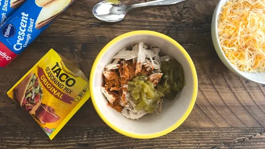 Step2In medium bowl, mix chicken, chiles and 1 teaspoon of the taco seasoning mix.