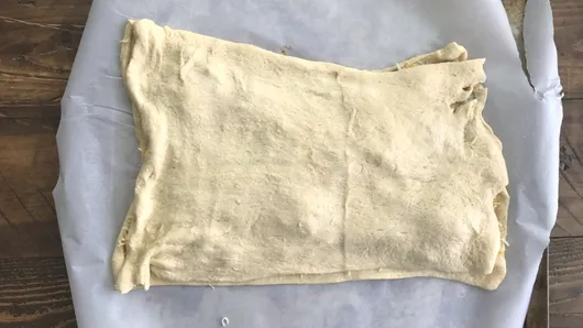 Step4Unroll second can of dough. Place on top, pressing edges firmly to seal.
