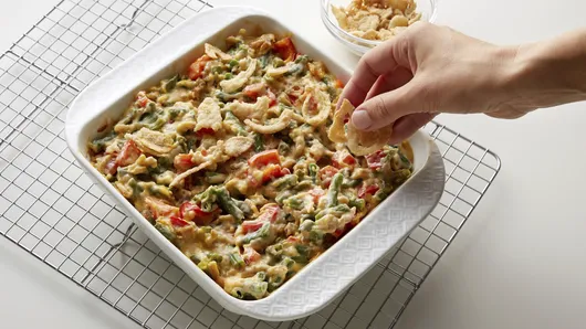 var configuration = {"title":"Cheesy Green Bean Casserole","introduction":"With a creamy sauce, perfectly al dente green beans, crunchy French fried onions and more in the mix, even traditionalists will have to admit this green bean casserole with cheese is delish. It’s the perfect blend of old school and new school. Canned cream of mushroom soup and French fried onions ensure there’s that classic creamy-crunchy texture contrast. Using frozen green beans, in place of canned, and fresh red bell pepper ensures veggies turn out crisp-tender and not at all mushy. Soy sauce is not detectable as a standalone ingredient, and it’s not meant to be. Its role is to enhance the flavor of the entire dish with a spike of umami. And the cheese? That’s just there to make sure it all goes down easy! So, if you’ve been tiptoeing around the traditional version of this dish—making it not because you love it, but because someone else does—you might find this twist is the perfect compromise!","servingSize":"1 Serving (1/2 cup)","image":{"small":{"media":"(min-width: 0px)","src":"https://mojo.generalmills.com/api/public/content/1TNiW_-Q-kCLMwiBfrLpRQ_webp_base.webp?v=aab27184\u0026t=e724eca7b3c24a8aaa6e089ed9e611fd"},"medium":{"media":"(min-width: 500px)","src":"https://mojo.generalmills.com/api/public/content/1TNiW_-Q-kCLMwiBfrLpRQ_webp_base.webp?v=aab27184\u0026t=191ddcab8d1c415fa10fa00a14351227"},"large":{"media":"(min-width: 767px)","src":"https://mojo.generalmills.com/api/public/content/1TNiW_-Q-kCLMwiBfrLpRQ_webp_base.webp?v=aab27184\u0026t=191ddcab8d1c415fa10fa00a14351227"},"alt":"Cheesy Green Bean Casserole"},"contributor":{"label":"By","name":"Betty Crocker Kitchens","profileUrl":"/about-us","displayDate":{"label":"Updated","date":"Nov 5, 2020"}},"ingredientGroups":[{"ingredients":[{"quantity":"1","description":"can (10 3/4 oz) condensed cream of mushroom soup"},{"quantity":"1","description":"cup shredded Cheddar cheese blend (4 oz)"},{"quantity":"1","description":"teaspoon soy sauce"},{"quantity":"1","description":"bag (12 oz) frozen cut green beans, thawed, drained"},{"quantity":"1","description":"small red bell pepper, chopped (1/2 cup)"},{"quantity":"1 1/2","description":"cups cheddar crispy fried onions (from 6-oz can)"}]}],"steps":[{"description":"Heat oven to 350°F. In 1 1/2-quart casserole, stir together soup, cheese blend and soy sauce. Stir in green beans, bell pepper and 1 cup of the onions.","stepShotImageUrl":"//mojo.generalmills.com/api/public/content/WpF5Kf65QUq7i63MhQzX6Q_webp_base.webp?v=739ebcf1\u0026t=51a43a57af4046789e5a7f20567b1195"},{"description":"Cover; bake about 30 minutes or until beans are tender and mixture is heated through. Stir; top with remaining 1/2 cup onions.","stepShotImageUrl":"//mojo.generalmills.com/api/public/content/S2_-sMskykWrwfiE8ovPjw_webp_base.webp?v=07c717ab\u0026t=51a43a57af4046789e5a7f20567b1195"},{"description":"Bake uncovered about 5 minutes longer or until onions are brown and crisp."}],"tips":[{"title":"Substitution ","description":"Instead of the red bell pepper, drain a small jar of diced pimientos and stir them into the bean mixture.","category":"Substitution","tipShots":[]},{"title":"","description":"Kitchen-Tested Recipe","category":"Kitchen Tested","tipShots":[]},{"title":"","description":"Love your \u003ca href=\u0022https://www.bettycrocker.com/recipes/green-bean-casserole/f466928f-a799-4cdc-89ba-1e0bbedf878b\u0022 target=\u0022_blank\u0022\u003egreen bean casserole\u003c/a\u003e? You should know we’ve got more than a couple ways to cook this classic. If you’re looking for a version with fresh green beans and a scratch sauce, the \u003ca href=\u0022https://www.bettycrocker.com/recipes/ham-and-cheese-green-bean-casserole/f445d8be-eb66-4120-b9e4-e6c36c2064c9\u0022 target=\u0022_blank\u0022\u003eHam and Cheese Green Bean Casserole\u003c/a\u003e is calling your name. Need a hands-off, oven-free version? Try \u003ca href=\u0022https://www.bettycrocker.com/recipes/slow-cooker-green-bean-casserole/1d724b7d-abf6-4026-8459-0df227bdc4a3\u0022 target=\u0022_blank\u0022\u003eSlow-Cooker Green Bean Casserole.\u003c/a\u003e Make it into a complete meal with \u003ca href=\u0022https://www.bettycrocker.com/recipes/green-bean-and-chicken-casserole/2a26e0f2-3ead-4a9f-9358-9c401cd4f7da\u0022 target=\u0022_blank\u0022\u003eGreen Bean and Chicken Casserole\u003c/a\u003e or \u003ca href=\u0022https://www.bettycrocker.com/recipes/pork-chop-and-green-bean-casserole/68624d81-072f-47be-a6f2-a330d23c9650\u0022 target=\u0022_blank\u0022\u003ePork Chop and Green Bean Casserole.\u003c/a\u003e We could go on and on, but we’ll leave it to you to try these recipes and to let us know what you think.","category":"No Title","tipShots":[]},{"title":"","description":"Making this dish for \u003ca href=\u0022https://www.bettycrocker.com/special-occasions/thanksgiving-recipes\u0022 target=\u0022_blank\u0022\u003eThanksgiving\u003c/a\u003e? Let the Betty Crocker Test Kitchens help you figure out how to get everything baked, roasted, boiled and mashed in time for the feast. We’ve got a \u003ca href=\u0022https://www.bettycrocker.com/special-occasions/thanksgiving-recipes/cheat-sheet\u0022 target=\u0022_blank\u0022\u003eThanksgiving Cheat Sheet\u003c/a\u003e that’ll get you through the 48 hours leading up to the holiday.","category":"No Title","tipShots":[]},{"title":"","description":"If you’re truly only making green bean casserole for other people, it’s time to find a side dish that you’ll love as much as others love this one. Find your new fave among our \u003ca href=\u0022https://www.bettycrocker.com/special-occasions/thanksgiving-recipes/sides\u0022 target=\u0022_blank\u0022\u003eThanksgiving side dish recipes.\u003c/a\u003e","category":"No Title","tipShots":[]}],"kitchenTips":[{"title":"Substitution ","description":"Instead of the red bell pepper, drain a small jar of diced pimientos and stir them into the bean mixture.","category":"Substitution",
