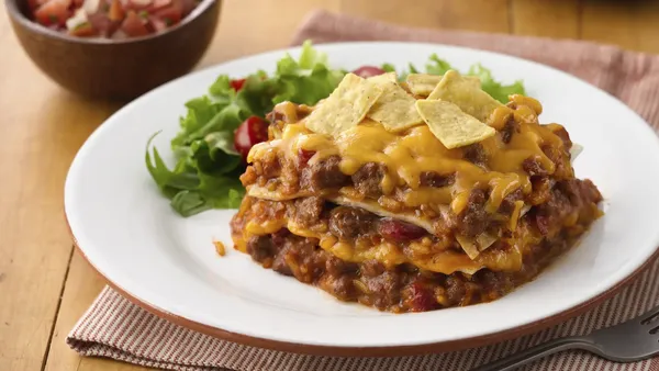 It's all your favorite taco flavors in a casserole dish! This Cheesy Layered Mexican Bake is packed with savory sausage, beef and beans for a hearty dinner that's sure to please. Use 2 cups thawed Make-Ahead Seasoned Ground Beef and Sausage in this Mexican bake recipe to save time in the kitchen and get this delicious meal on the table in a jiffy.