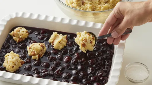 var configuration = {"title":"Cherry-Almond Sugar Cookie Cobbler","introduction":"Easy elegance is what this dessert is all about. Dark, sweet cherries get baked under an almond-sugar cookie crust and served with a warm vanilla cream sauce for a cobbler that brings the best of summer to the table, any time of the year. That’s right, this recipe is made with frozen sweet cherries and utilizes a couple of other clever shortcuts—the “easy” part! There’s no pitting involved when you use frozen cherries and the sugar cookie crust starts with Betty’s quick mix. Folding cream cheese and chopped almonds into the sugar cookie dough makes them extra moist and flavorful, but the best part is that this crust doesn’t need to be rolled out. Just drop balls of cookie dough on top of the cherries, and you’ll be ready to bake. There’s always time for dessert with this recipe at the ready!\n","servingSize":"About 3/4 Cup Cobbler and 2 Tablespoons Sauce","image":{"small":{"media":"(min-width: 0px)","src":"https://mojo.generalmills.com/api/public/content/GoenHSvibEmkSpn1r9dERw_webp_base.webp?v=0f90d2b0\u0026t=e724eca7b3c24a8aaa6e089ed9e611fd"},"medium":{"media":"(min-width: 500px)","src":"https://mojo.generalmills.com/api/public/content/GoenHSvibEmkSpn1r9dERw_webp_base.webp?v=0f90d2b0\u0026t=191ddcab8d1c415fa10fa00a14351227"},"large":{"media":"(min-width: 767px)","src":"https://mojo.generalmills.com/api/public/content/GoenHSvibEmkSpn1r9dERw_webp_base.webp?v=0f90d2b0\u0026t=191ddcab8d1c415fa10fa00a14351227"},"alt":"Cherry-Almond Sugar Cookie Cobbler"},"contributor":{"label":"By","name":"Betty Crocker Kitchens","profileUrl":"/about-us","displayDate":{"label":"Updated","date":"Sep 17, 2019"}},"ingredientGroups":[{"name":"Topping","ingredients":[{"quantity":"1 ","description":"pouch (17.5 oz) Betty Crocker™ Sugar Cookie Mix ","productLink":"/products/cookiemix/sugar"},{"quantity":"1/2 ","description":"cup butter, softened "},{"quantity":"2 ","description":"oz (from 8-oz package) cream cheese, softened "},{"quantity":"1 ","description":"egg "},{"quantity":"1/2 ","description":"cup coarsely chopped almonds "}]},{"name":"Filling","ingredients":[{"quantity":"1 1/4 ","description":"cups granulated sugar "},{"quantity":"1/4 ","description":"cup cornstarch "},{"quantity":"8 ","description":"cups frozen dark sweet cherries, thawed "},{"quantity":"1 ","description":"teaspoon almond extract "},{"quantity":"1 ","description":"tablespoon coarse sparkling sugar "}]},{"name":"Vanilla Sauce","ingredients":[{"quantity":"1/3 ","description":"cup granulated sugar "},{"quantity":"4 ","description":"teaspoons cornstarch "},{"quantity":"1 1/2 ","description":"cups half-and-half "},{"quantity":"2 ","description":"tablespoons butter "},{"quantity":"1 ","description":"teaspoon vanilla "}]}],"steps":[{"description":"Heat oven to 350°F. Spray 13x9-inch (3-quart) glass baking dish with cooking spray. "},{"description":"In large bowl, stir cookie mix, 1/2 cup softened butter, the cream cheese and egg until soft dough forms. Stir in almonds. Set aside. ","stepShotImageUrl":"//mojo.generalmills.com/api/public/content/7BMmerUU_0ae0CypPVyk5Q_webp_base.webp?v=296584d7\u0026t=51a43a57af4046789e5a7f20567b1195"},{"description":"In 4-quart saucepan, mix 1 1/4 cups granulated sugar and 1/4 cup cornstarch. Stir in cherries. Cook over medium-high heat 10 to 12 minutes, stirring constantly, until mixture thickens and boils. Boil and stir 1 minute. Stir in almond extract. Pour into baking dish. Drop dough by rounded tablespoonfuls evenly over filling (some cherries will show). Sprinkle coarse sparkling sugar on tops of cookie dough. ","stepShotImageUrl":"//mojo.generalmills.com/api/public/content/NzdYh2he1kS22qc5SJ7AGw_webp_base.webp?v=ce1fffd6\u0026t=51a43a57af4046789e5a7f20567b1195"},{"description":"Bake 30 to 34 minutes or until cookies are golden brown and edges of fruit filling are bubby. Cool 15 minutes before serving. "},{"description":"Meanwhile, in 1-quart saucepan, mix 1/3 cup granulated sugar and 4 teaspoons cornstarch. Stir in half-and-half until smooth. Heat to boiling over medium heat, stirring constantly. Boil about 2 minutes or until slightly thickened. Remove from heat; stir in butter and vanilla. Keep warm until ready to serve. "}],"tips":[{"title":"","description":"No time to make vanilla sauce? Serve cobbler with vanilla ice cream or sweetened whipped cream.","category":"Variation","tipShots":[]},{"title":"","description":"Use a cookie scoop to make portioning cookie dough even faster and more consistent. ","category":"Techniques","tipShots":[]},{"title":"","description":"Kitchen Tested: 7/2019","category":"Kitchen Tested","tipShots":[]},{"title":"","description":"Sparkling sugar gives your sugar cookie crust an elevated look. Sparkling sugar can usually be found in the cake decorating section of most large grocery stores. If you don’t have it or don’t wish to purchase, granulated sugar works, too.","category":"Recipe/Ingredient Facts","tipShots":[]},{"title":"","description":"There are two types of cherries: sweet and sour. Sour cherries are sometimes called pie cherries, because that’s where they really shine. Sweet cherries are great for eating fresh and taste fantastic in this cobbler.","category":"Recipe/Ingredient Facts","tipShots":[]},{"title":"","description":"Cobblers are deep-dish fruit desserts typically featuring a thick crust—usually made of biscuit dough. Some versions are enclosed in a crust, while others have biscuit or crumb topping. Cobblers fall into the same family of desserts as: crisps, crumbles, betties, grunts, slumps, pandowdies and fools. All are easy to throw together and feature fruit.","category":"Recipe/Ingredient Facts","tipShots":[]},{"title":"","description":"The warm vanilla sauce in this recipe is similar to crème anglaise—a rich custard sauce served with desserts like cake—but much easier to make. While crème anglaise features egg yolks, which can easily curdle, 